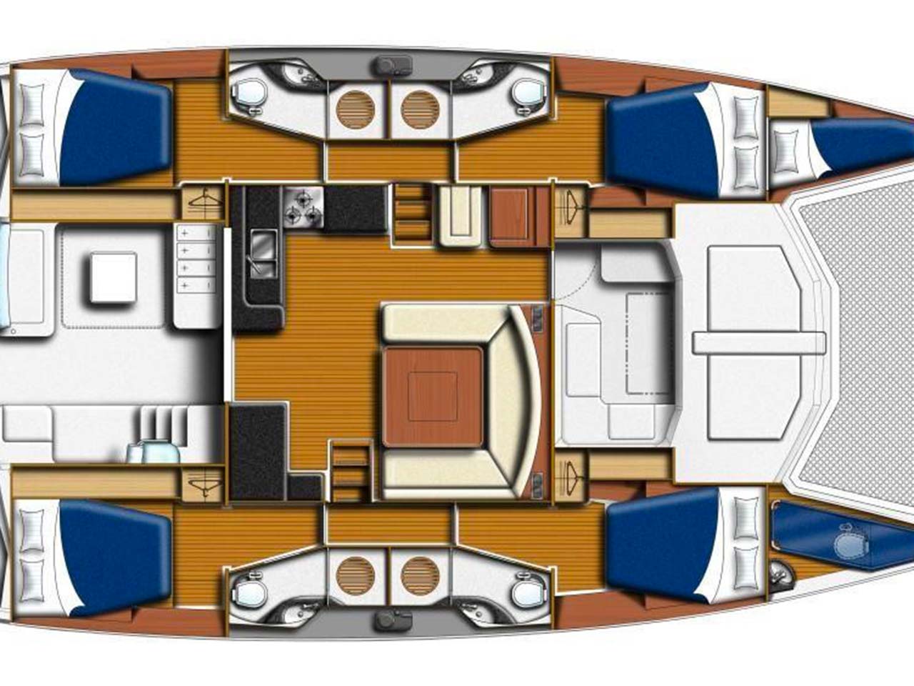 4 cabines avec un lit double dotées d'une salle de bains privées.